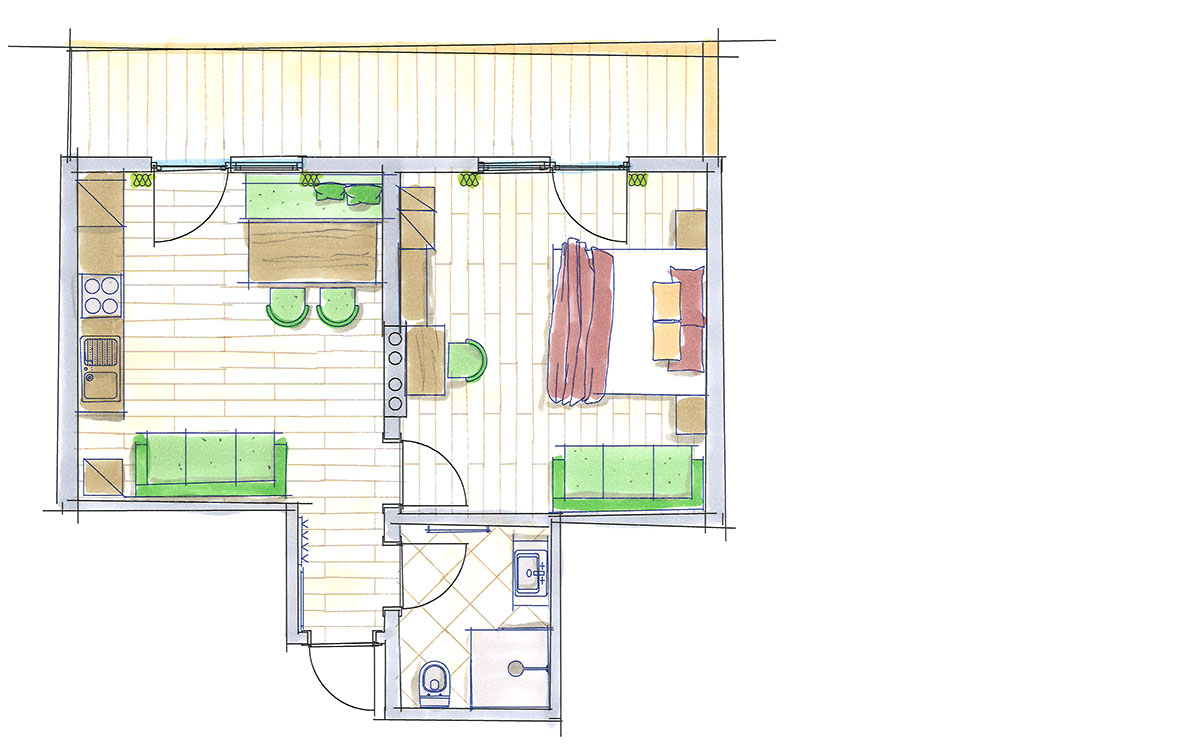 Unsere gemütlichen Appartements für je 2-4 Personen verfügen über ein Schlafzimmer mit Dusche und WC, sowie einer komplett eingerichteten Wohnküche, Balkon, Kabel-TV, Safe, Fön, WLAN (gratis), Bettwäsche und Handtücher.